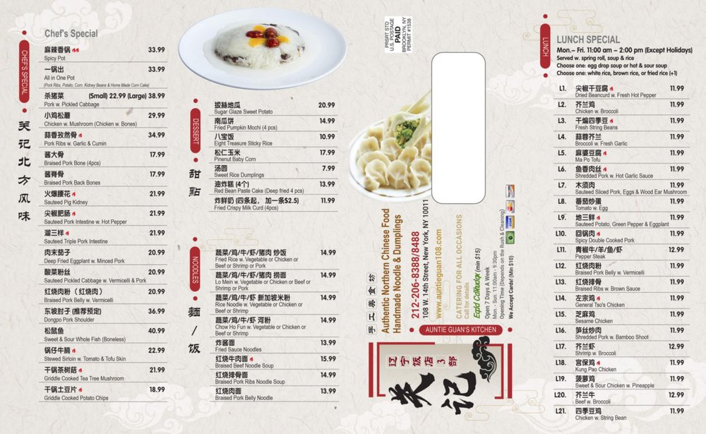 Welcome to Auntie Guan’s Kitchen, an extraordinary dining destination nestled in the heart of New York City. Located at 108 W 14th St, New York, NY, this charming establishment specializes in authentic Dongbei cuisine, bringing the rich flavors of northeastern China directly to your plate.